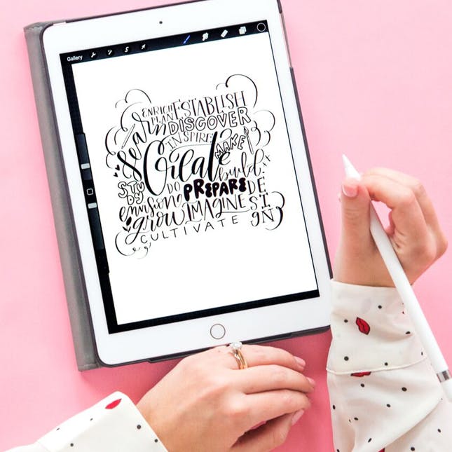Your instructor, Kiley, will walk you through her process for creating beautiful hand-lettered designs. You’ll learn how to sketch out your collage, pair different lettering styles, add embellishments, and more! As a bonus, Kiley will also show you how to digitize and polish your design using the Procreate app. Woot!